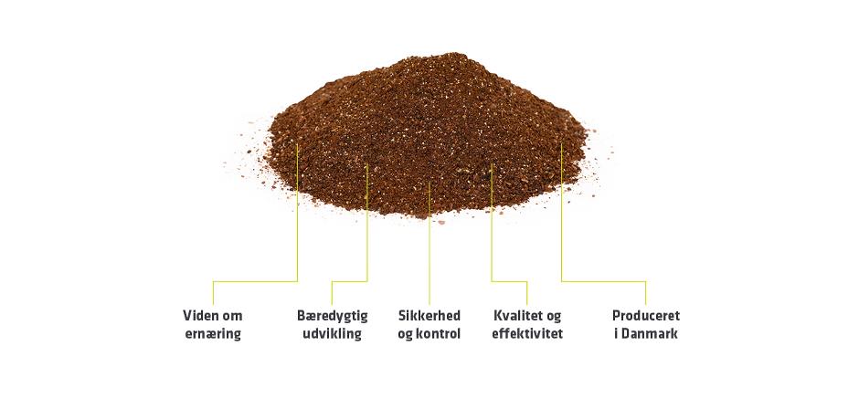 Vores tilskudsfoderprodukter er udviklet med fokus på bæredygtighed og cirkulær økonomi. For os giver det god mening med flere egenskaber: naturlige ingredienser, øget vitalitet, øget energiudnyttelse og en positiv effekt på kundens bundlinje.